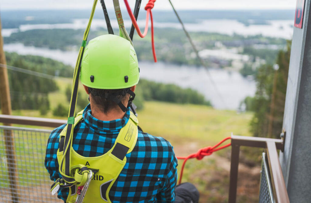 Syke nousee ja jännitys kutittaa vatsanpohjaa, kun tähyilee 140 metriä alempana järven toisella puolen siintävää päätepysäkkiä. Edessä on hurja, lähes kilometrin pituinen liuku rinteiden huipulta Tahkon keskustaan. Tahkon uusi vaijeriliuku, Tahko Zipline, on Suomen pisin ja vierekkäisten vaijerien ansiosta tuulenpieksämä elämys on mahdollista kokea kimpassa kaverin kanssa. Matkan varrella, 6–40 metrin korkeudessa, maisemat avautuvat upeina ja vauhti kiihtyy jopa 50 kilometrin tuntinopeuteen.